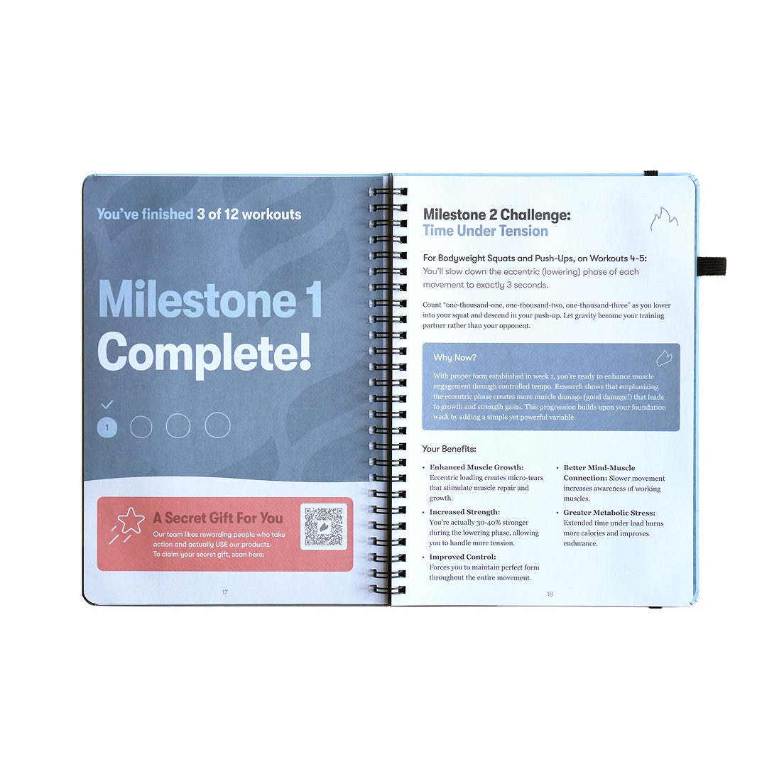 Physical spiral workout journal (12 guided workouts)